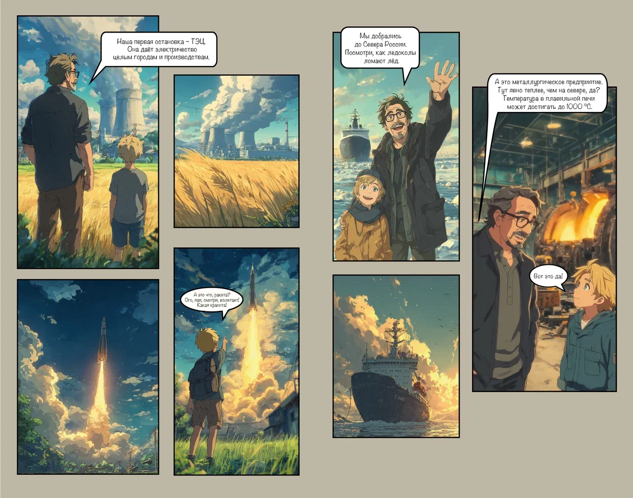 Комикс демонстрирует масштаб деятельности КЭАЗ через динамичное визуальное повествование. Такой приём превращает сложную отраслевую специфику в яркую и наглядную историю, подчеркивая критическую важность продукции КЭАЗ для стратегических отраслей экономики страны.