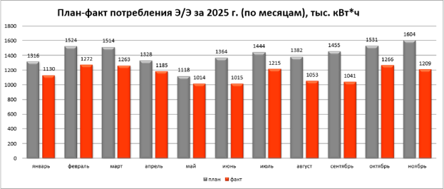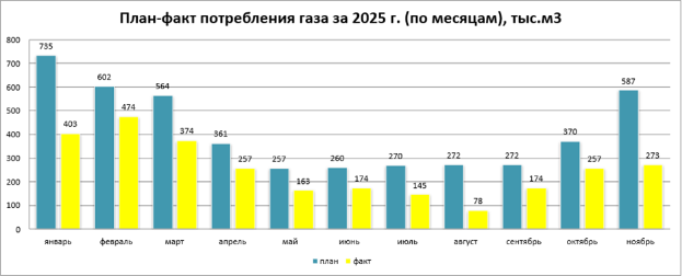 В течение всего периода — с января по ноябрь фактическое потребление газа оставалось ниже плановых значений, при этом наиболее существенная экономия была зафиксирована в зимние месяцы.